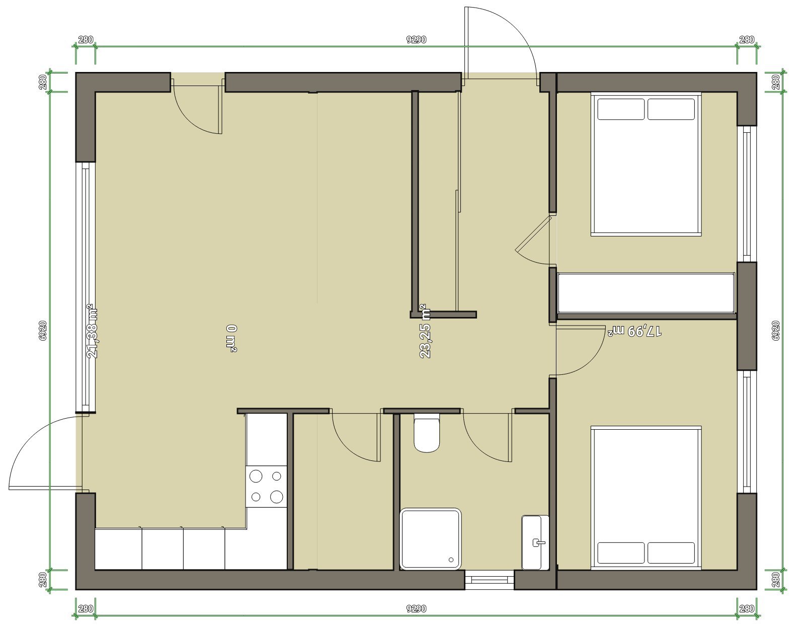 - Visa konstrukcija apšiltinta 250 mm izoliacija, užtikrinančia puikią šilumos varžą.